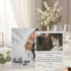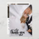 Share the romance of your special day with a bold yet elegant finish. This design features a stunning full-bleed layout that places your favorite wedding photography front and center, overlaid with hand-lettered brush calligraphy and decorative heart flourishes. Ideally suited for modern couples, the jet black ink against the soft photo background creates a chic, high-contrast look that makes your message of gratitude truly memorable.