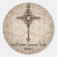 Elegant Scroll Christian Cross w/Swirl Background Classic Round Sticker