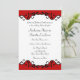 Elegant scroll border with a classic red, black and white colour scheme make this design timeless and bold.