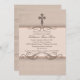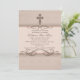 Shades of peach, cream and brown blend together to create a faint damask background which is embellished by elegant scrolls. THE FEATURED CROSS CAN BE ELIMINATED, dragged to any location, made larger or smaller (+-) making this a versatile invitation.