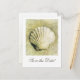 Lovely painted scallop seashell save-the-date postcard to send out for your beach, summer or destination wedding, anniversary or other special occasion. Customise it for your special day.