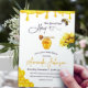 Sweet and trendy Yellow Honey Bee Themed Elegant She Found Her Honey Bee Bridal Shower Invitation featured watercolor yellow honey, bees, honeycombs, and sunflower flowers. Matching products you can find in the collection.