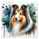 This stunning watercolor art print captures the grace and intelligence of a Sable Shetland Sheepdog, depicted with rich golden-brown and white tones. The dog's flowing coat and expressive eyes are beautifully enhanced by abstract watercolor splashes in deep blue, navy, and teal, creating a captivating and artistic composition. Perfect for Sheltie lovers, dog enthusiasts, and those who appreciate refined pet portraits, this high-quality print adds a touch of elegance and charm to any home or office decor.