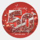 Elegant Shimmering Red and Silver 50th Birthday Classic Round Sticker