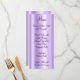 A faux pale lavender purple satin ombre foil wedding menu with elegant modern calligraphy.