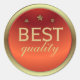 Elegant round sticker design featuring a red metallic circle with faux gold frame and the text "Best quality". The text is fully customisable.