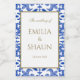 This elegant Sicilian patterned mini wine label is a great way to add a special touch to your wedding day, as well as acting as a thoughtful wedding favour for your guests. Inspired by vintage Sicilian patterns, this particular pattern was hand-drawn and is therefore exclusive to our store, allowing you to brand your wedding in a sophisticated manner. For items matching this famous, white and blue, Mediterranean aesthetic, see our full collection. This stylish label is fully customisable, so you can add in your own details or change the design to suit you. To do this, simply click on "Personalise this template" and get started.