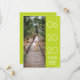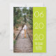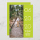 Elegant Side Swept Photo Save the Date Announcement with a simple and modern right-justified rectangle design in lime punch green. Add a photo and your wedding details to customise. Background colour on back side of invite may be changed to complement the photo or to add your wedding colour.