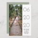 Elegant Side Swept Photo Save the Date Announcement with a simple and modern right-justified rectangle design in white. Add a photo and your wedding details to customise. Background colour on back side of invite may be changed to complement the photo or to add your wedding colour.