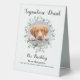 This table tent sign is the perfect size for our tables and easy to read. I also like the material it is made with and no worries about it falling or sliding. Just perfect! Everything about this card is perfect. I like that it says what we want on the front and on the back we were able to personalize a message for our guests.
