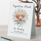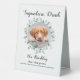 Customise this pet wedding sign with your dog, cat, puppy or kitten favourite photos, names and signature drinks!. COPYRIGHT © 2020 Judy Burrows, Black Dog Art - All Rights Reserved. Elegant Signature Drink Pet Wedding Dog 2 Photo Table Tent Sign