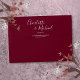 Featuring signature script names, this elegant return address envelope can be personalised with your names and address details in chic white lettering on a burgundy background. You can customise the background to your favourite wedding theme colour. Designed by Thisisnotme©