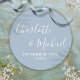 Featuring signature style names and special date, this elegant sticker can be personalised with your names in chic white typography on a dusty blue background. You can customise the background to your favourite wedding theme colour. Designed by Thisisnotme©