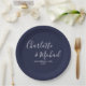 Elegant Signature Script Navy Blue Wedding Paper Plate