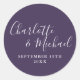 Featuring signature style names and special date, this elegant sticker can be personalized with your names in chic white typography on a purple background. You can customize the background to your favorite wedding theme color. Designed by Thisisnotme©