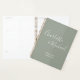 Elegant signature sage green wedding planner personalised with signature style names. Designed by Thisisnotme©