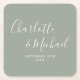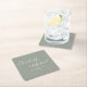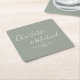 Elegant Signature Script Sage Green Wedding Square Paper Coaster