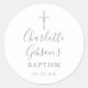 Elegant Signature Silver Cross Baptism Christening Classic Round Sticker