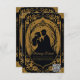 Elegant silhouette of a bride and groom surrounded by ornate swirls and embellishments. The design is done in a luxurious combination of gold and black, which exudes elegance and sophistication. The intricate details give the invitation a romantic and classy touch,