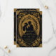 Elegant silhouette of a bride and groom surrounded by ornate swirls and embellishments. The design is done in a luxurious combination of gold and black, which exudes elegance and sophistication. The intricate details give the invitation a romantic and classy touch,