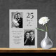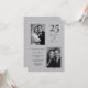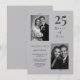 This elegant 25th wedding anniversary invitation features a refined silver-grey background paired with a charcoal and black colour palette, classic fancy script typography, and a modern two-photo layout that beautifully highlights a meaningful journey together. The black and white photo style combined with soft calligraphy details creates a timeless look that feels both heartfelt and sophisticated.