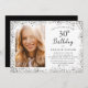 The design features a glamourous silvery glitter border and elegant handwritten script typography.