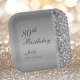 These elegant silver glitter and diamond sided 80th Birthday square 7" paper plates are perfect for your or your loved one's eightieth birthday party. They're chic, trendy and stylish while at the same time being classy. The modern yet traditional fonts are crisp and clean and make these beautiful napkins unique and one-of-a-kind. These sparkly and glamourous plates are very easy to customise and make your own. Simply select "Personalise this Template" and type in your information. In seconds you'll see your fabulous 80th birthday party paper plates.