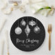 Elegant Silver and Black Ornament Christmas Paper Plate