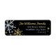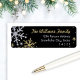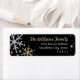 Festive return address label design features sparkling silver and gold winter snowflakes with custom text for your address. Snowflake border has a textured glitter looking appearance on a black background.
