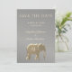 Luxury, elegant, sandstone silver background, with unique giant monogram - gold foil elephant - symbol of love, fertility and good luck.