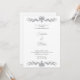 Introducing an elegant and sophisticated wedding invitation that is perfect for couples seeking a classic and timeless design. The invitation features a clean white background, enhanced with silver scroll work that adds an intricate touch of elegance. The traditional black font used for the invitation text contrasts beautifully with the silver design, creating a sophisticated and stylish look.