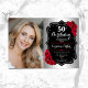 Elegant Silver Black Red Roses Photo 50th Birthday Invitation