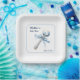 Elegant Silver Blue Rattle Bow Baby Shower Paper Plate