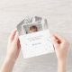 Elegant Silver Brushstrokes w/Joy Script Photo All In One Invitation