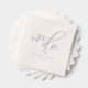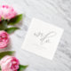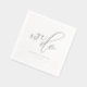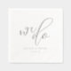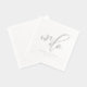 These wedding napkins feature a minimalist and elegant design with the phrase "we do" in flowing, cursive script at the centre. The layout is clean and modern, using a grayscale colour palette with soft metallic silver text on an off-white background. The typography combines a hand-drawn style for the main message with sans-serif fonts for a contemporary look. Perfect for adding a touch of sophistication to your wedding celebration, these napkins convey a mood of intimacy and romance through their simple yet impactful design.