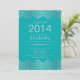 Formal graduation party invitation featuring a modern silver chevron top and bottom border set on a turquoise blue background. Flip our stylish invitation over to find a matching back for an extra special touch. Can also be used for a graduation announcement. Easy to personalise with your class of 2014 grad party information. Available in our shop in a variety of popular high school and college school colours.