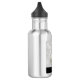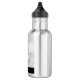 Water bottle with a magical holiday design. Featuring a silver Christmas ball with snowflake decorations and finished off with a pretty silver bow. The background is a silver bokeh lights illustration with elegant stars scattered throughout.