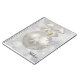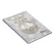 Notebooks with a magical holiday design. Featuring a silver Christmas ball with snowflake decorations and finished off with a pretty silver bow. The background is a silver bokeh lights illustration with elegant stars scattered throughout.