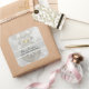 Stickers with a magical holiday design. Featuring a silver Christmas ball with snowflake decorations and finished off with a pretty silver bow. The background is a silver bokeh lights illustration with elegant stars scattered throughout.