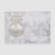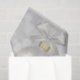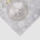 Tissue paper with a magical holiday design. Featuring a silver Christmas ball with snowflake decorations and finished off with a pretty silver bow. The background is a silver bokeh lights illustration with elegant stars scattered throughout.