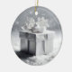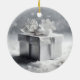 Elegant Silver Christmas Gift Box with Snowflakes Ceramic Ornament