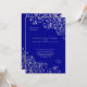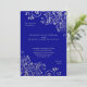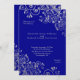 Elegant Silver Flower Swirls Navy Blue Wedding Invitation