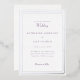 Silver Frame Silver Foil Wedding Invitation. Elegant and Simple. White background. No parents listed. Contact designer for additional options. Lavender text.