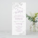 This beautiful wedding program features an elegant design with dusty purple or lavender text on a white background and lacy silver grey faux foil curls and swirls in the corners. The titles are written in fancy script calligraphy, and there is space for your ceremony and wedding party details, as well as a short thank you for your guests. Wonderful way to welcome your friends and family to your wedding celebration.