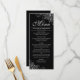 This beautiful menu will add some style to your wedding reception. It features a beautiful design with ornate silver grey faux foil curls and swirls on a classic black background. There is space for the names of the couple and wedding date, and the text is fully customisable. Elegant, classy, and glam, this menu will add an air of sophistication and grace to your celebration.