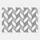 These wrapping paper sheets feature an elegant chevron design with a geometric herringbone pattern in white, grey, and faux silver glitter with black lines.