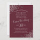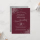 This beautiful invitation is designed for couples who have decided to take their wedding celebrations online due to the ongoing pandemic. It features an elegant design with a burgundy, maroon, or wine red background, lacy script calligraphy, and ornate silver faux foil curls and swirls in the corners. Perfect way to include all of your friends and family in your special day while keeping everyone safe and healthy.