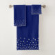 Elegant silver grey confetti on navy blue Bath Towel Set. Silver metallic like confetti!