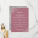 This beautiful wedding menu is simple, elegant, sophisticated and stylish. It features an elegant dusty rose or mauve pink design with lacy grey script calligraphy and delicate silver grey curls and swirls in the corners. The back is a beautiful marbled grey colour.