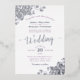 This beautiful wedding invitation features both lavender purple and real foil silver printing on a classic white background. The beautiful design has lacy script calligraphy with floral lace filigree in the corners. Stylish, elegant, sophisticated, and chic, this invitation is fancy and glam. The perfect choice for elegance, style, and class.